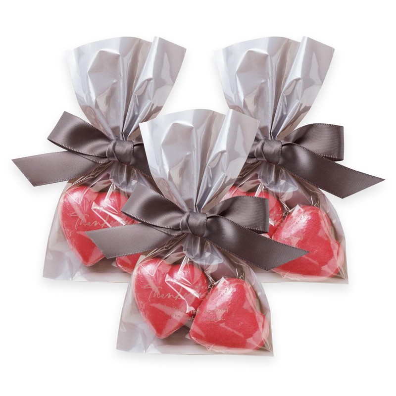 • きらめくパウダーを纏ったハートモチーフ。可愛らしいリボン付きのパッケージ。結婚式やお礼、お祝い、お返し等のプチギフトにおすすめの入浴料