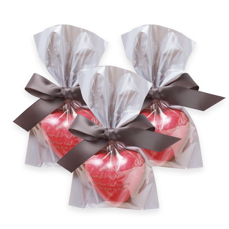 - きらめくパウダーを纏ったハートモチーフ。可愛らしいリボン付きのパッケージ。結婚式やお礼、お祝い、お返し等のプチギフトにおすすめの入浴料