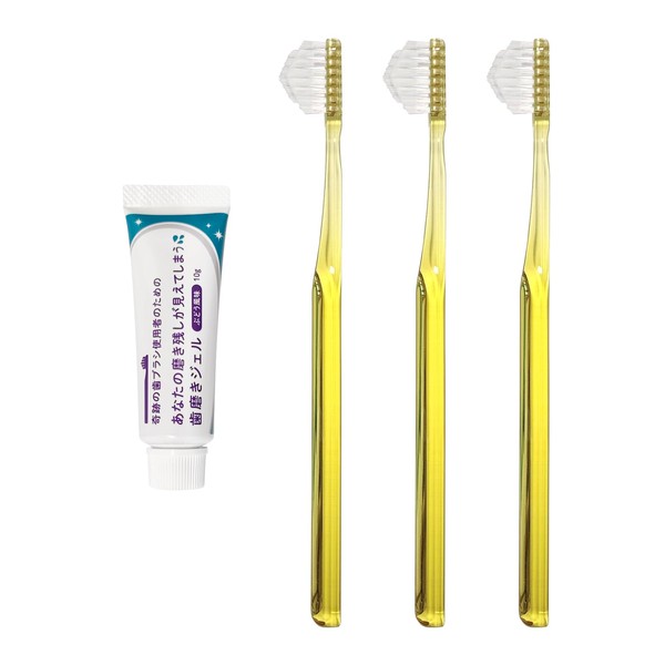 奇跡のオーラルケア 染め出し歯磨きジェル&奇跡の歯ブラシ〈トライアングル〉3本セット (イエロー3本)