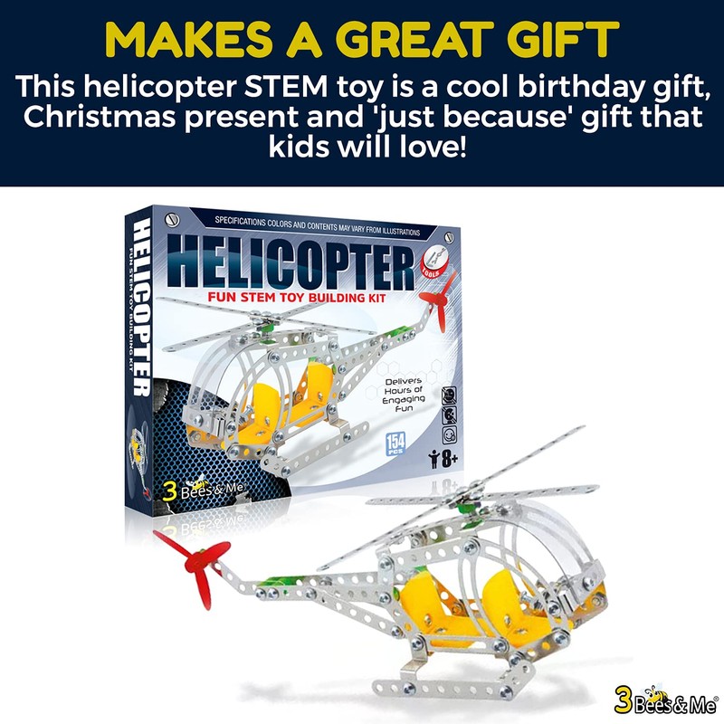 3 Bees & Me Metal Helicopter Erector Set for Boys and Girls Age 8 Years Old to Adult | Fun STEM Toy Building Kit | Educational Birthday Gift for Junior Engineers | Kids Building Projects