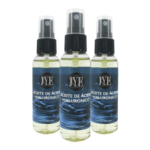 - 3 Botellas de 60 ml de Aceite de Acido Hialuronico JYE para uso externo.