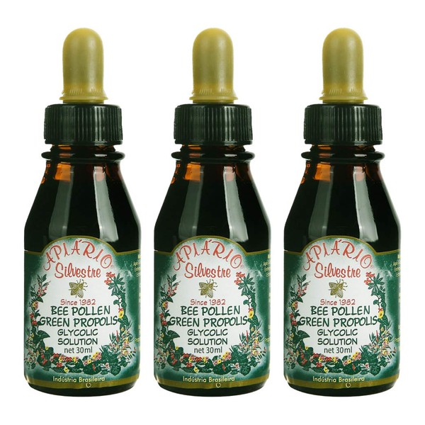 3 Bottles Apiario Silvestre Bee Pollen Green Bee Propolis Liquid Glycolic Extract -Non Alcoholic, Wax Free
