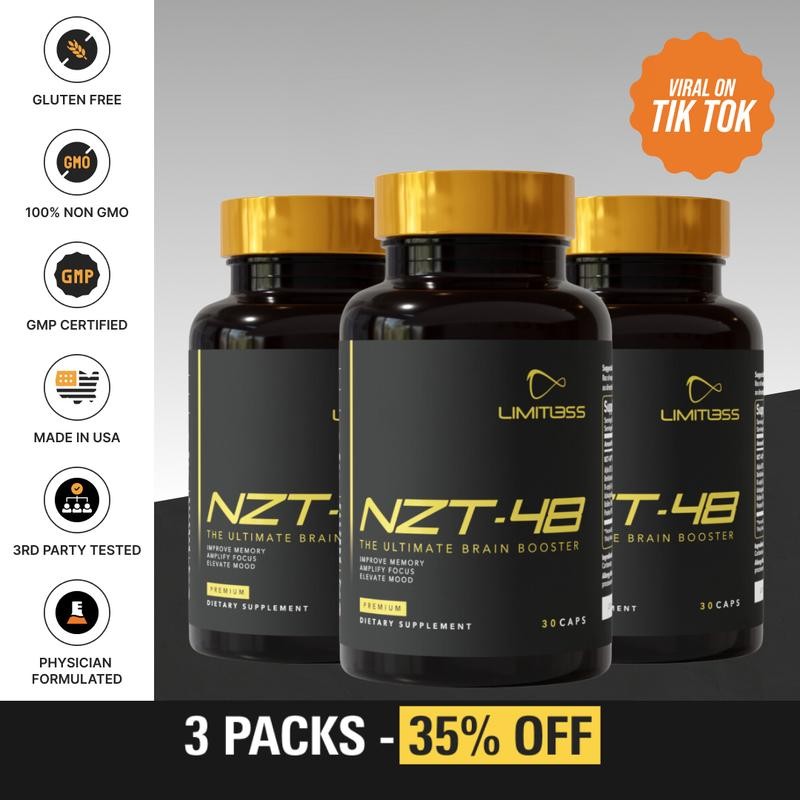 3 Bottles of NZT-48 Ultimate Brain Booster by Limitless - Organic Extract for Cognitive Function & Immune Support