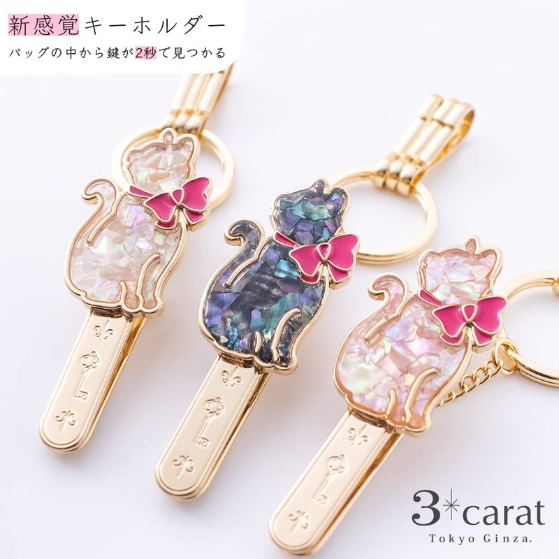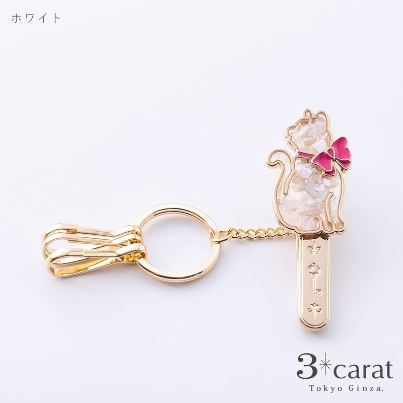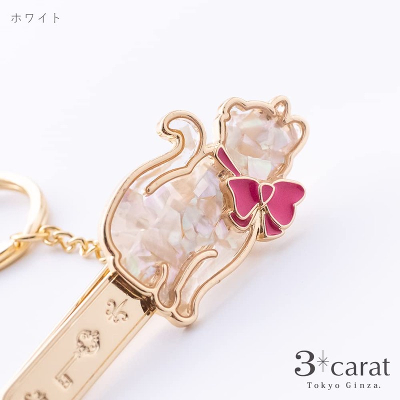 3 carat Bag Key Clip, Shell / Cat Sideways Orientation, White, Black, Pink, Cat Goods, Keychain, 2 Seconds to Find Your Keys, Stylish, Popular Gift, white