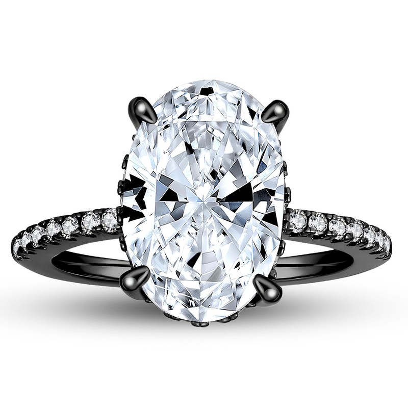 - Women's engagement ring replica with a modern twist, Crushed Ice Cut 3 ct cz oval engagement ring or proposal promise ring for girlfriend. Wedding rings for her, 925 sterling silver engagement rings with White Gold, or Black Plating for a Gothic til death ring.