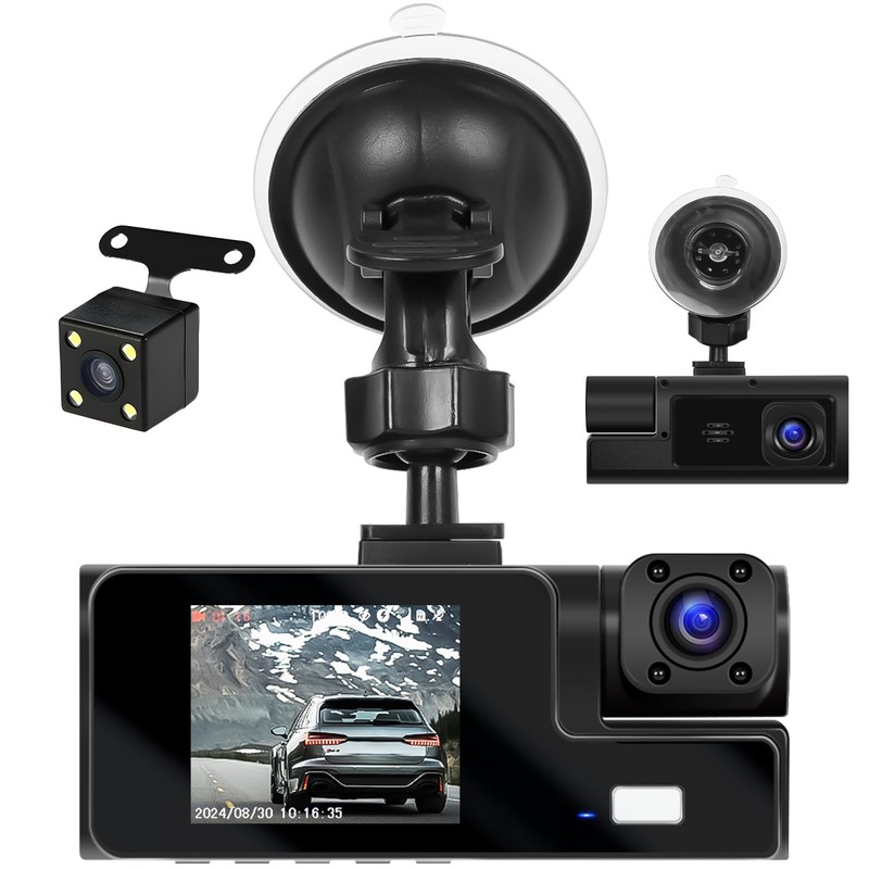 • 【3 Channel Dash Camera】The dash cam is equipped with a 150°inside car camera and a 120°rear camera.1080P Front camera can provide clear and sharp videos, capturing small details when involved in a collision. The rear camera always keeps you informed of the road status behind and protects you against backing into another car while parking. For ride-share drivers, the indoor car camera provides extra protection while escorting customers