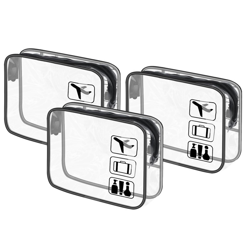 3 Pcs - Clear PVC Makeup Bag with Zipper