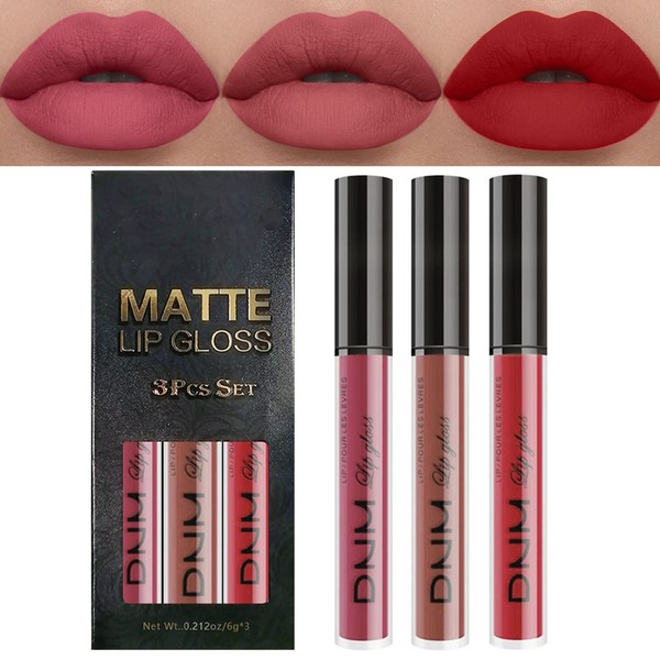 3 Colours Matte Liquid Lipstick Waterproof Durable Liquid Lip Gloss Lip Gloss Set (#10)