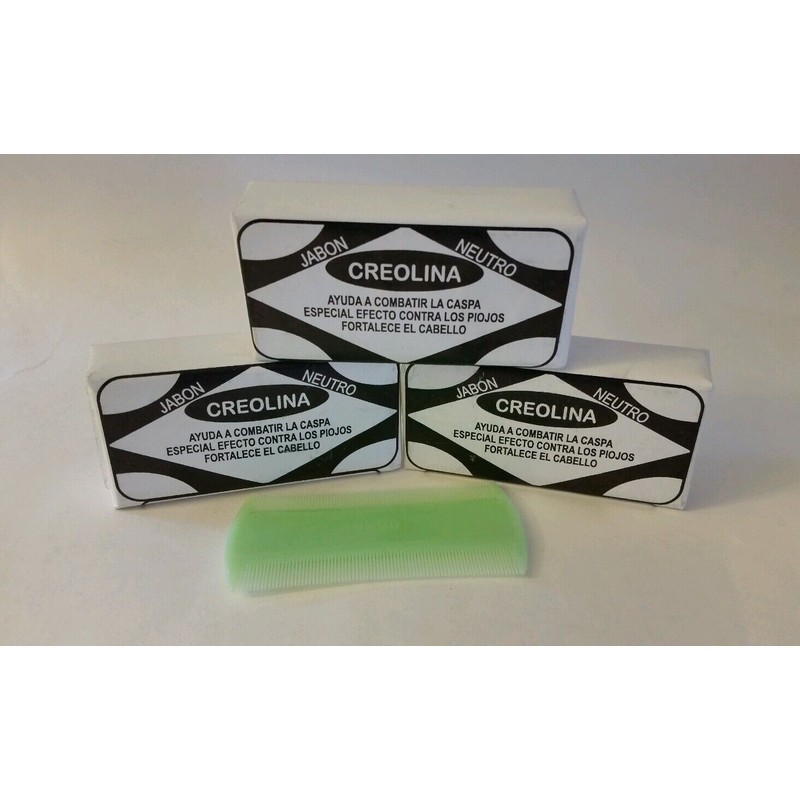3 Creoline lice Soap Glycerin, free Comb/Jabon neutro Creolina y PEINE p/piojos