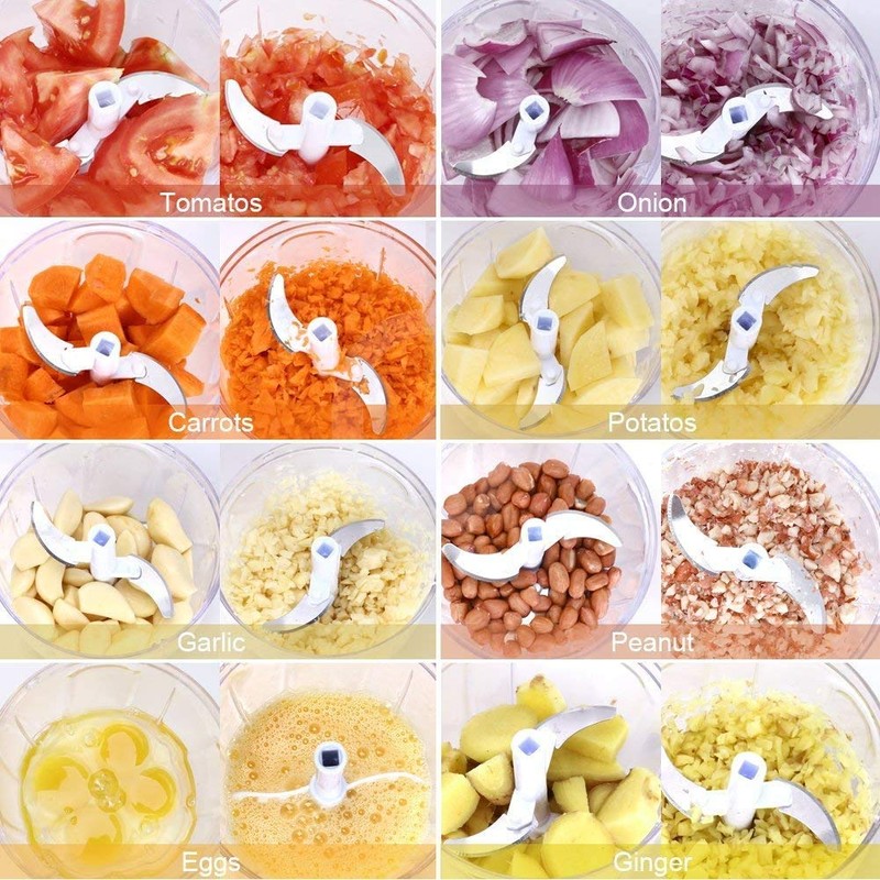 - POWERFUL BLADE, SAVE TIME The sharp stainless steel blade can handle food quickly. Put your favorite vegetables in the chopper and pull the string, one stroke corresponds to 16 cuts, after 8 to 12 times you can start eating