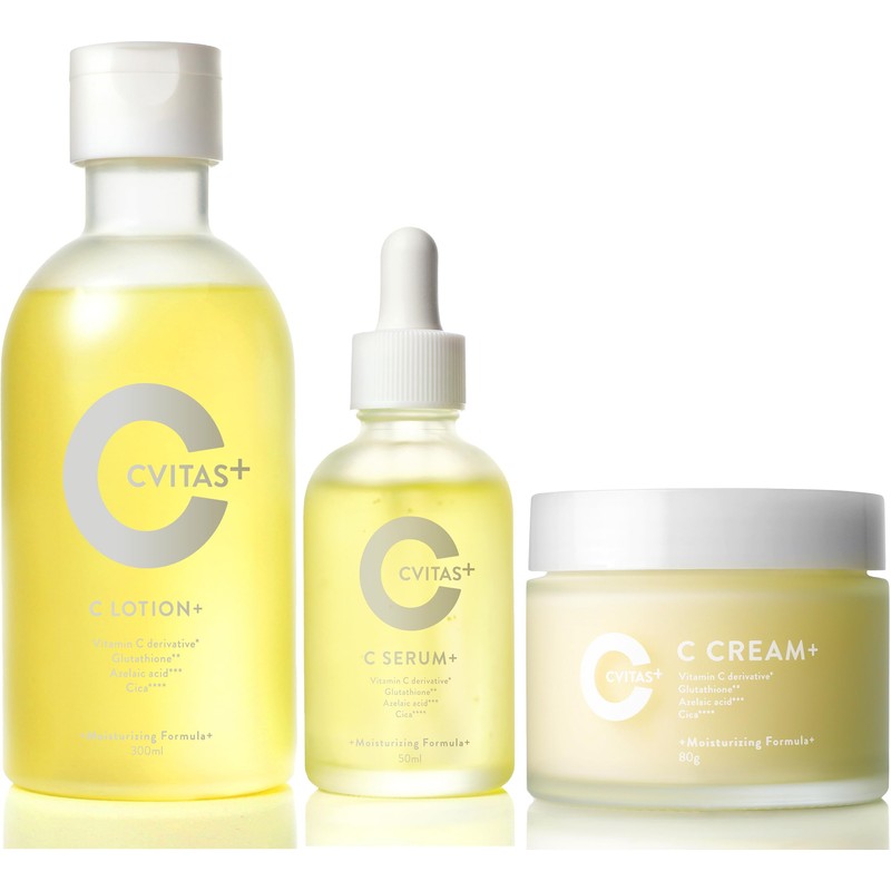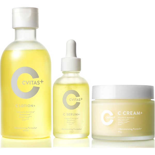 【高保湿 スキンケア 3点セット】CVITASプラス 化粧水・美容液・クリーム ビタミンC アゼライン酸 レチノール 配合 C LOTION + 300ml C SERUM + 50ml C CREAM + 80g 約2ヶ月分 毛穴ケア うるおい 美肌 柑橘 香り シービタス CVITAS +