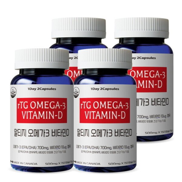 통라이프 ()알티지오메가3 비타민D 75일분- 4병 Tonglife RTG Omega 3 Vitamin D 75-day Supply - 4 Bottles
