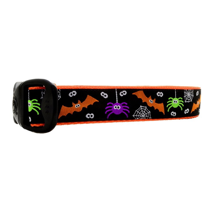 3 Dirty Dawgz Adjustable 1" Bats and Spiders Halloween Web Dog Collars for Medium Large and X-Large Dogs (Large 1" (17"-27" Neck))