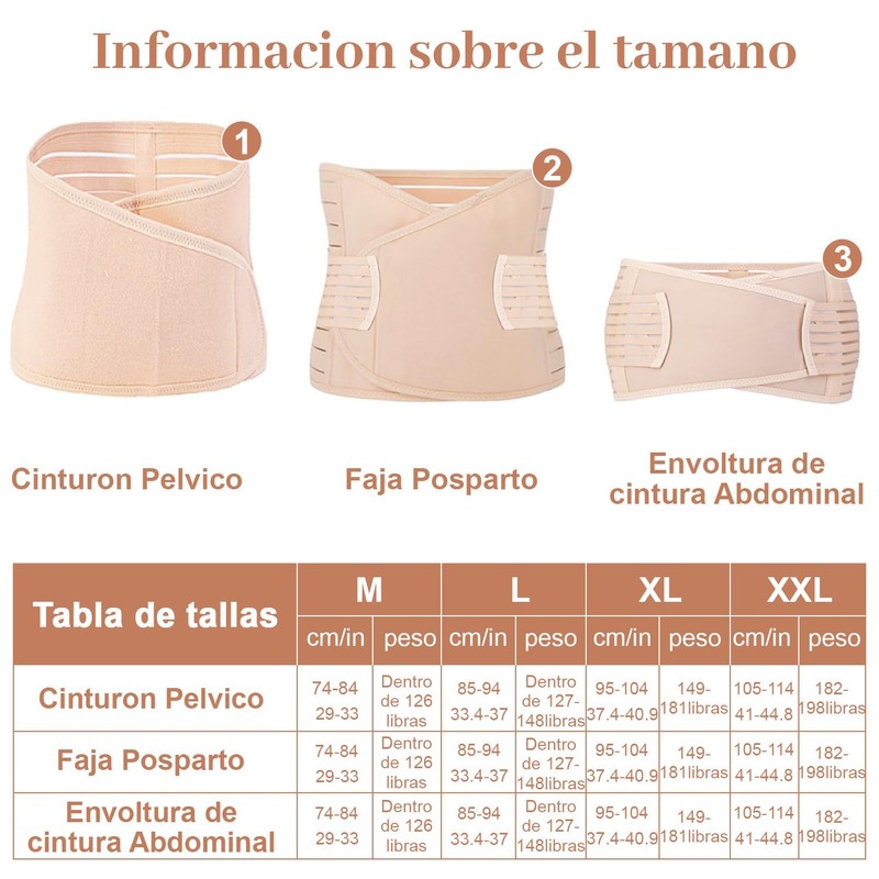 - 🤰🏻【Faja Posparto 3 en 1】Banda para el vientre posparto en 4 tamaños: M, L, XL y 2XL. El juego incluye 3 correas abdominales/lumbares/pélvicas separadas para brindar soporte al abdomen, la pelvis, las caderas y la cintura. Además, una banda abdominal puede minimizar la tensión en la pared abdominal, evitar la flacidez de los órganos internos y encoger el útero después del parto. Te ayuda a recuperarte de una cesárea o parto natural.
