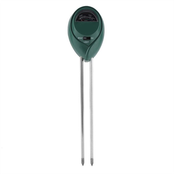 - ❃Fácil de usar: este medidor de humedad 3 en 1 con función de prueba de luz y ph no necesita baterías, y puede usarlo en interiores o exteriores. Inserte la sonda en el suelo alrededor de 2-4 pulgadas, luego mueva el interruptor para probar lo que desea medir.