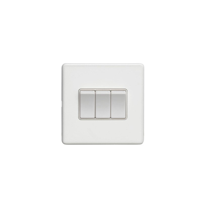 3 Gang 10Amp 2Way Switch Flat Concealed White Plate White Rockers