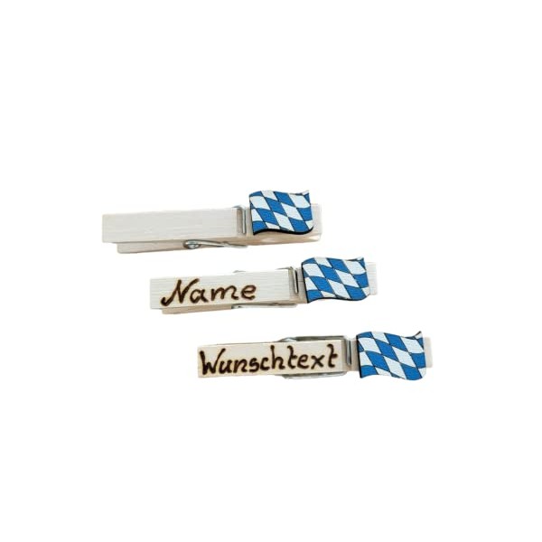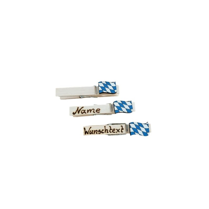 Name oder Text wird individuell auf der Holzklammer eingebrannt (max. 12 Zeichen)