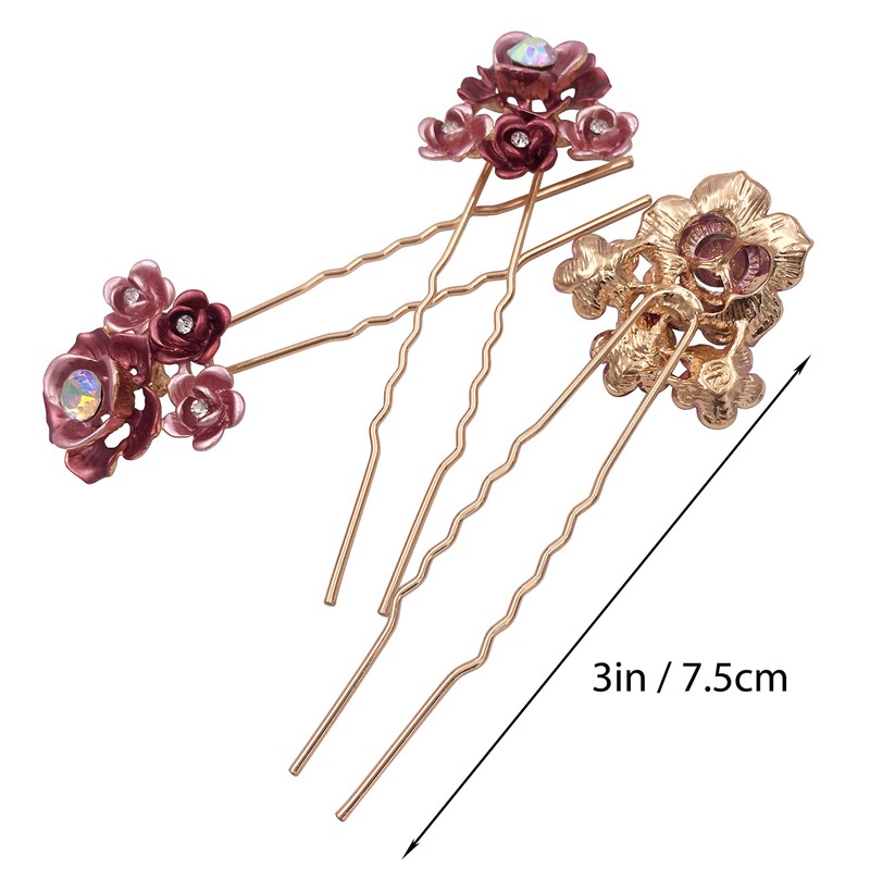 - ELEGANT UPDO JEWEL: Rose clur designed hairpins put a iking finish on your ensemble. They are great accessories to your hair buns, French twist, and all kinds of updos. The sparkly crystals add bling to your hair.