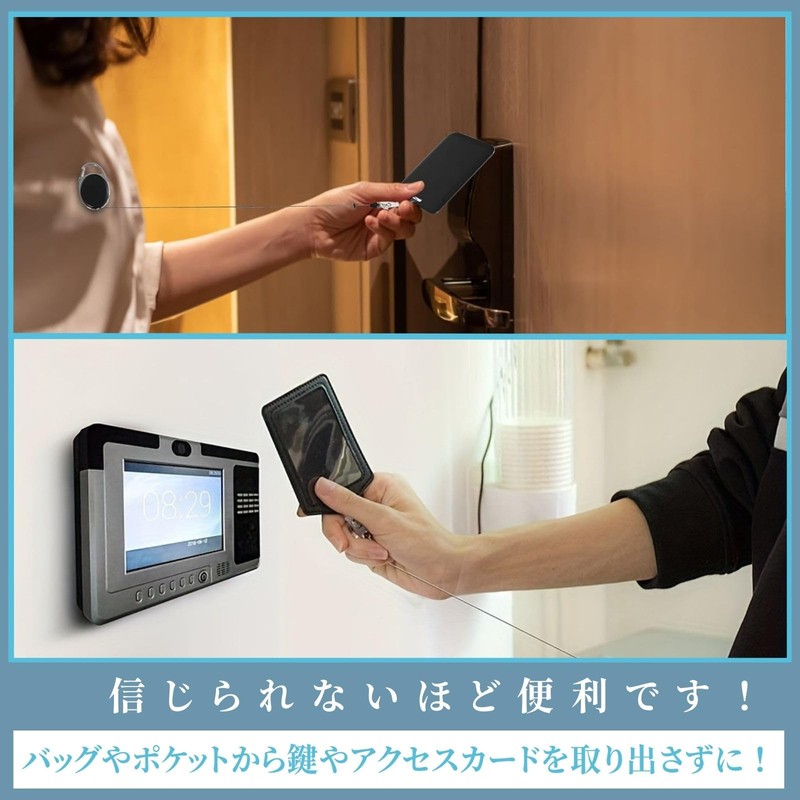 - 「すごく便利に使えます!」まるで魔法を持っているかのように、カードを取り出すことが簡単になります!軽く引くだけで、伸縮紐が自在に伸び、最大 60cm まで伸ばすことができます。これにより、カードをスキャンしたり、証明書を提示したりする際に、カードケースを外さなくても簡単に操作できます。