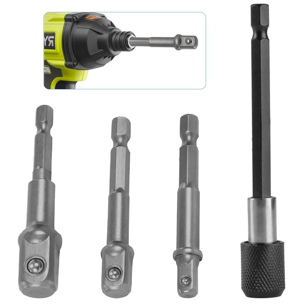 3 Impact Socket Adapter Set & 1/4 Hex Extension Bar, 1/2 1/4 3/8 Impact Driver Socket Adapter, Impact Adapter Square Socket Bit, 3/8 Impact Extension Socket Driver Bits for Automotive Tools for Men