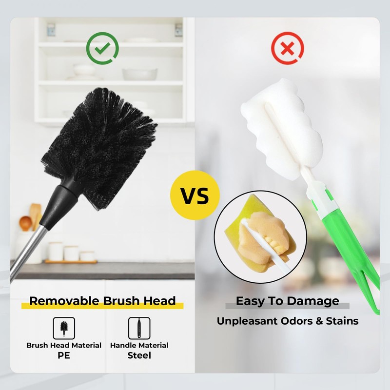 - 2-In-1 bottle cleaner Brus: Bottle brush with hidden, removable straw brush, when not in use, the straw brush can be hidden inside the brush handle