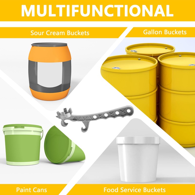 - 【3 in 1 Practical Design】You will get 1 bucket opener tool 5 gallon, which can open various of plastic or rubber buckets. Even small iron buckets, you can use its top to pry its lid. And it also has a drum bung wrench to twist up iron bucket lid.