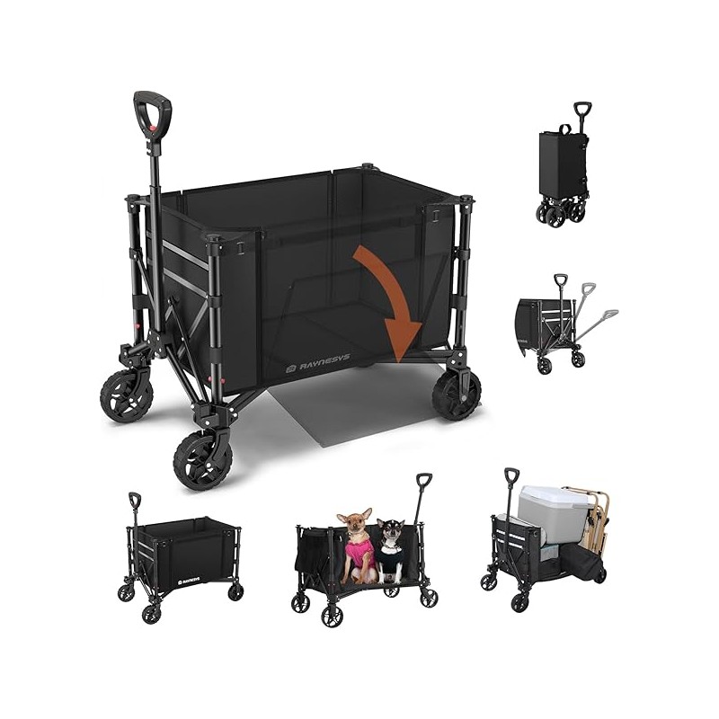 3 in 1 Collapsible Wagon Converts to Bench, 220lbs Foldable Wagon Cart with Wheels, 120L Shopping Cart for Groceries Folding Utility Wagon for Beach, Garden, Camping, Sport, Black