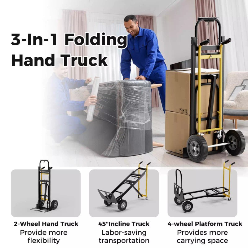 3-in-1 Convertible Hand Truck with 4 Rubber Wheels 1000 lbs Max Load Capacity
