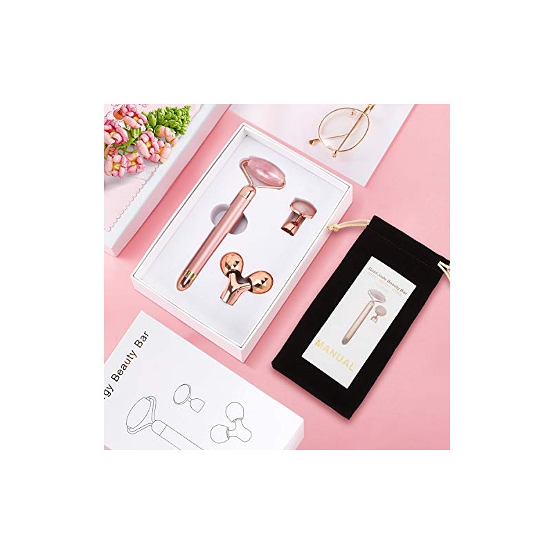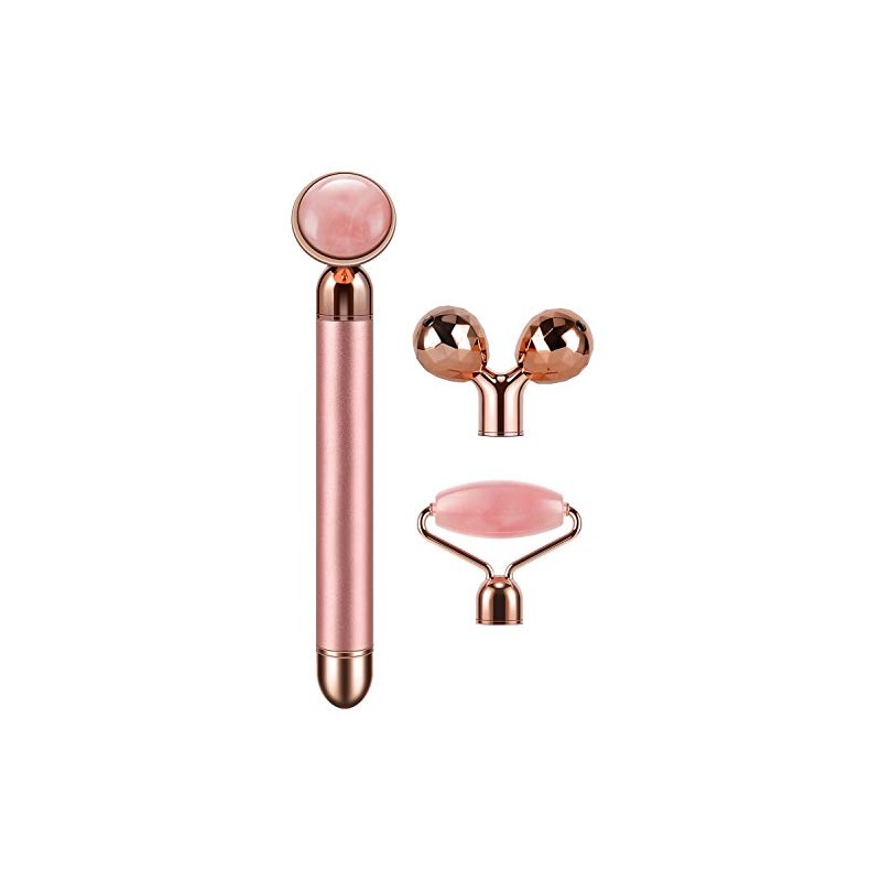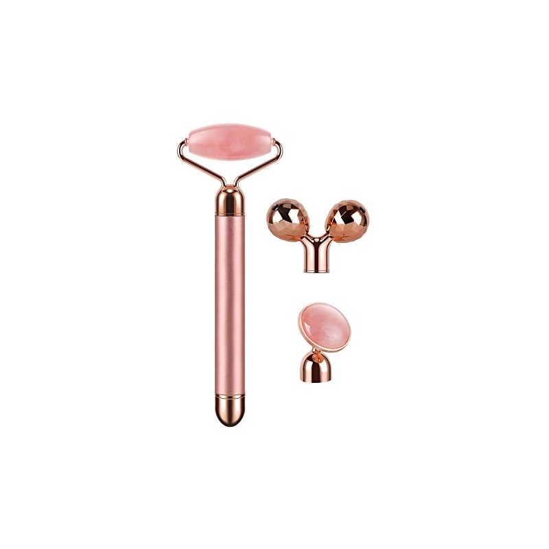 3-IN-1 Electric Jade Roller 3D Roller Facial Roller & Face Massager, Rose Quartz