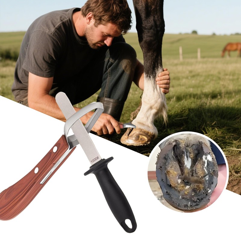 - High-Carbon Steel Blade for Precision Cutting:Forged from durable high-carbon steel for superior Sharpenerness and long-lasting edge retention, this farrier hoof knife—a Sharpener hoof knife essential for professional farrier supplies—ensures clean, effortless hoof trimming
