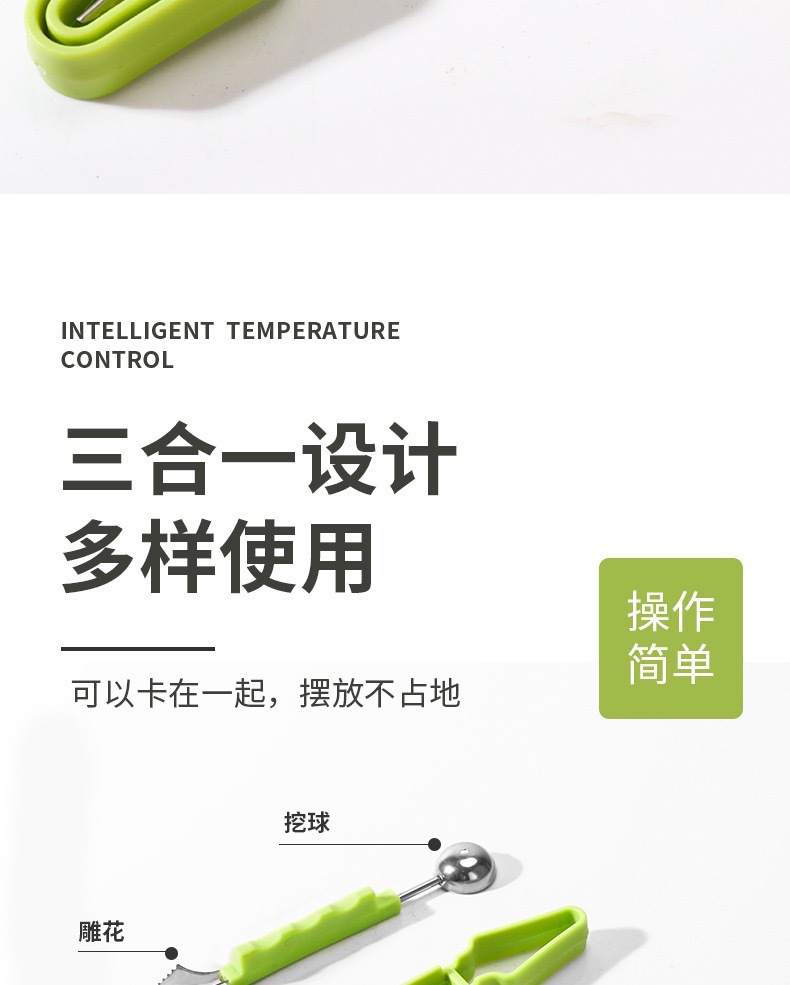 ✨ Discover the convenience of having a melon baller, fruit carver, and scraper all in one sleek design. This versatile gadget simplifies your prep work, making healthy eating more enjoyable.
