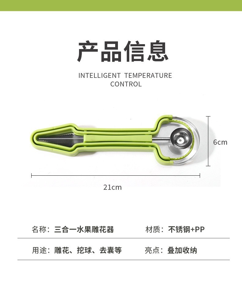 🍉 Elevate your fruit game with this indispensable 3-in-1 tool, designed for every kitchen enthusiast. It’s the ultimate helper for creating beautiful fruit presentations effortlessly.