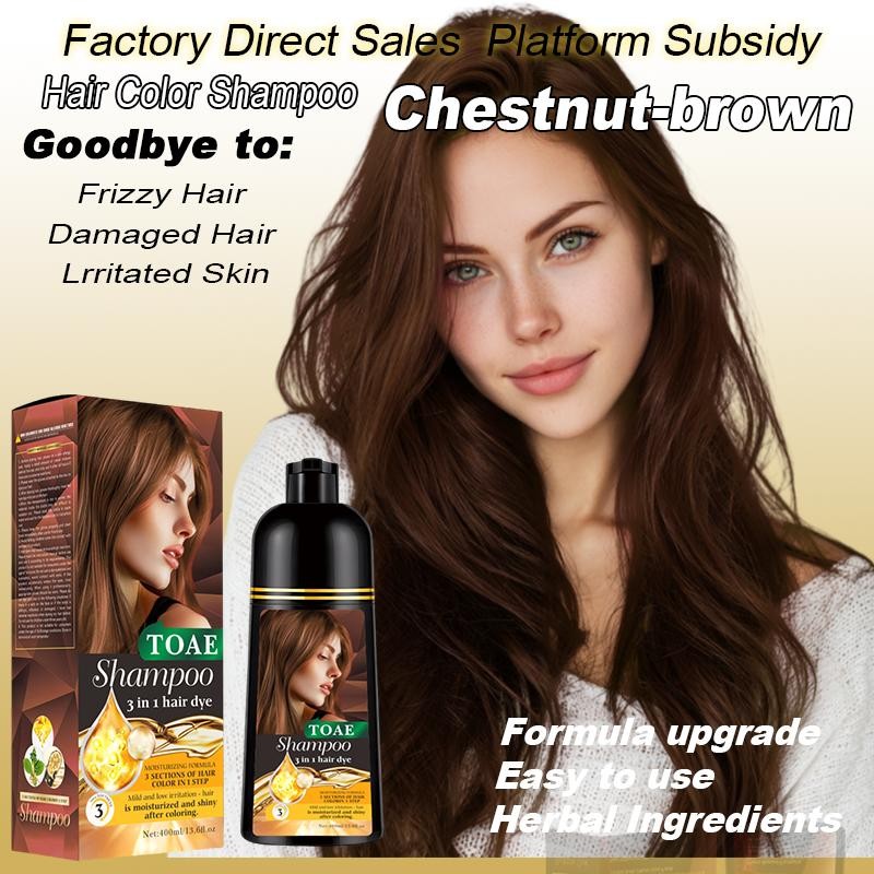 3-in-1 Hair Dye Shampoo, Herbal Gray Coverage, TOAE Unisex Formula, Safe and Ammonia-Free:_Natural