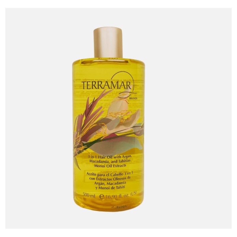 3-in-1 Hair Oil with Argan, Macadamia, and Monoi Extracts, Smoothing and Hydrating Serum (Jumbo - 16,91 Fl Oz)