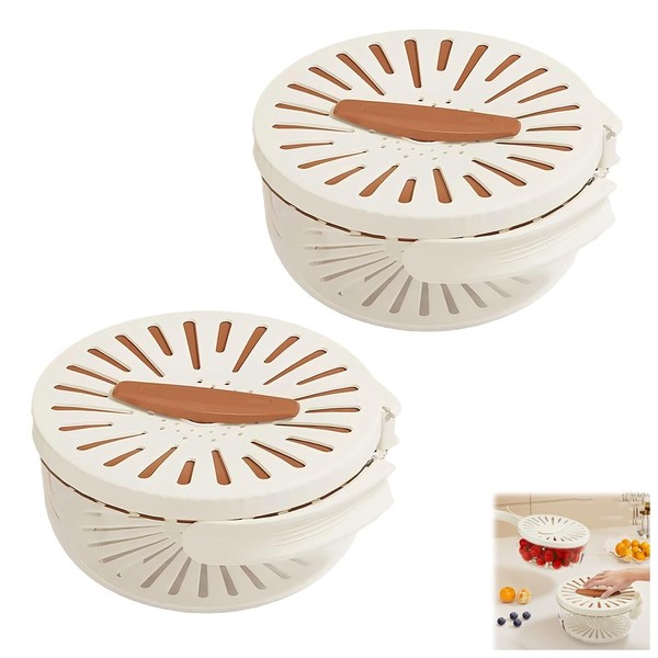 3 in 1 Kitchen Colanders Bowl, Multifunctional Drain Basket with Strainer and Storage, Fruit and Vegetable Washing Bowl with Handle for Salad Mixing, Food Storage for Fridge/Picnic (Brown)