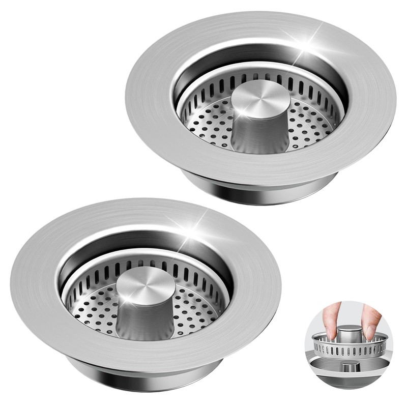 - [Upgraded 3 in 1 Design Kitchen Sink Drain Strainer] This is a new kitchen sink drain strainer, with a sink drain strainer, kitchen sink plug and odor isolation in one.It has the function of storing water, draining and capturing food waste and residues to avoid clogging drains, which is really a good and reliable helper.