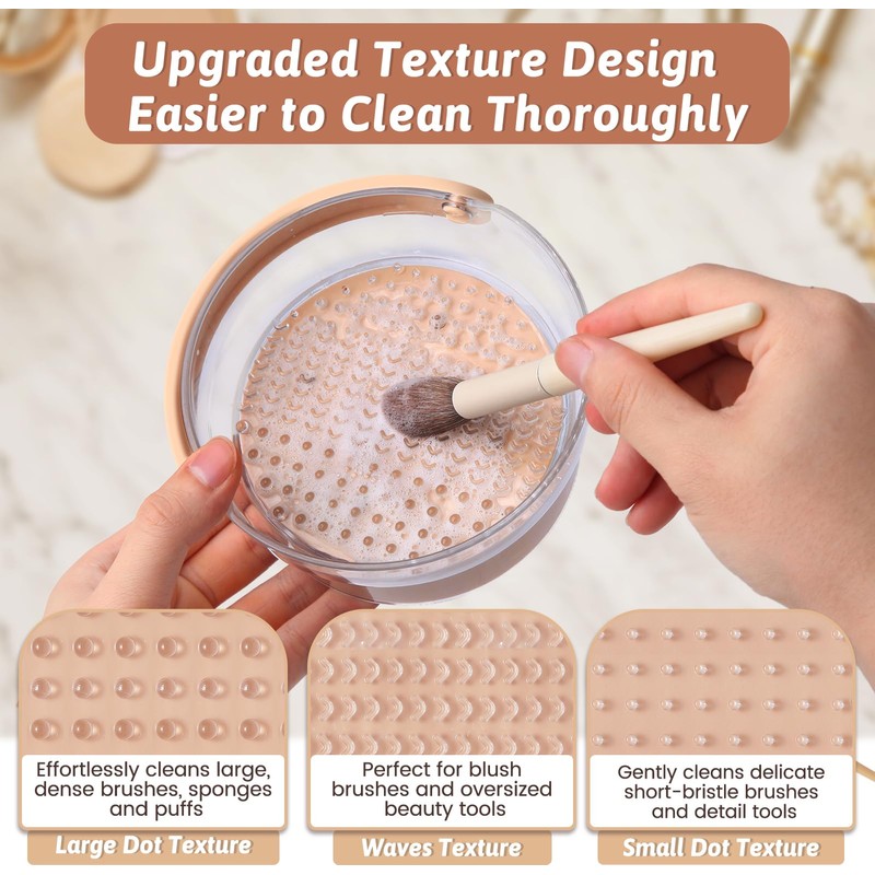 - 3-Texture Cleaning System: Our makeup brush cleaning bowl features three specialized textures (wave, bead, and honeycomb) designed to effectively lift and remove makeup from foundation brushes, eyeshadow brushes, and cosmetic tools, while protecting bristle integrity