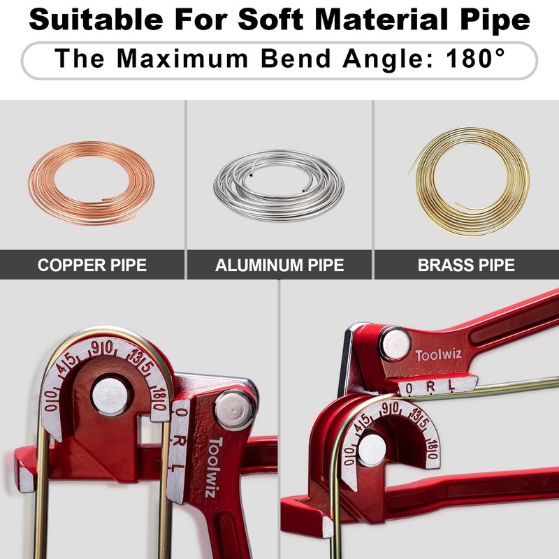 - Toolwiz pipe bender tool for two-handed bending of thin-wall hollow soft tubing up to 180° degree, with a wall thickness of max. ~0.8mm. [ ATTENTION: Do not use extension or excessive force! Only for thin wall & Soft pipes. ]