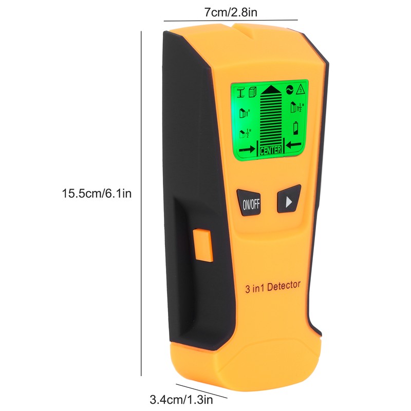 1、3 in 1 multi‑scanner stud detector for wood, metal, and AC wires. Helps you quickly & easily locate wood, metal studs, joists, metal pipes, rebar & live AC wire behind wall, floor, ceiling. 2、Features a large LCD display & sound warning to help detect the accurate location of the objects. Saves you lots of time by displaying the desired stud center & the precise position of the stud. 3、Easy to use, after the battery is installed(not included), there will be a long beep when it is turned on. When it is automatically turned off, press the test button for 2 seconds to turn it on again. 4、It is lightweight, long‑lasting and convenient to use in your home, office, workshop. Makes all of your DIY home projects easier such as mounting your TV, bathroom cabinet, photo frame, garage racks etc. 5、The compact design is easy to carry and use. When the battery power is too low, it will prompt. The ergonomic design means you can hold the wall scanner in your hand comfortably.