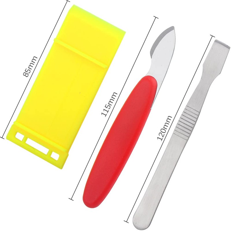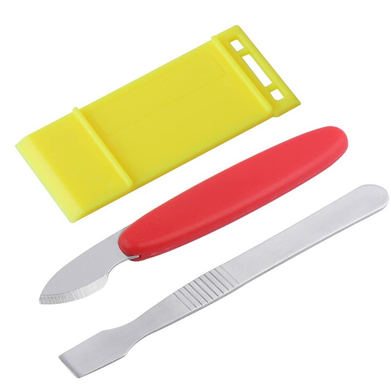 - Package includes 2x thin blade metal opener and 1x plastic card-type separator.