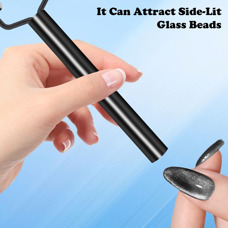 - 【Easy to Use】Our cat eye magnet for nails are easy to use. Slide the tool 2-3mm above the freshly applied cat-eye nail polish - the powerful magnetic attraction will instantly draw the paint into a cat-eye effect. The lightweight, ergonomic handle reduces hand fatigue during work, making it a good choice for DIY enthusiasts or manicurists. Pro Tip: Tilt the magnet 45° for a dynamic side-sweep effect, allowing you to master nail magnet nail art like a pro in minutes!