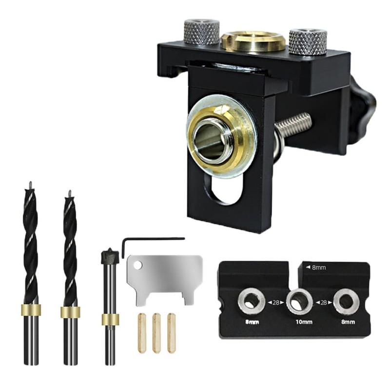 3 in 1 Pocket Hole jig kit, Self Centering Woodworking Doweling Jig Kit, Adjustable Drilling Guide Puncher Locator Carpentry Tool (Type B)