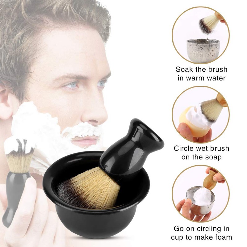 3 in 1 Professional Shaving Brush Kit Man's Shaving Set with Shaving Frame Base, Soap Bowl, Badger Hair Shaving Brush for Men Father Husband Boyfriend Gift