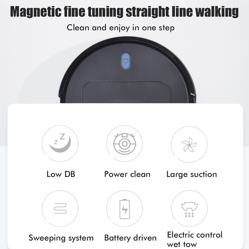 1、1. Strong suction power, suitable for all surfaces, the wireless robot vacuum cleaner can automatically clean tiles, wooden floors and short carpets. One click can activate suction power up to 1800 Pa to ensure that there is no dust, dirt and debris on the floor carpet. 2、2. Floor‑standing transition and smart sensor: You don't need a nanny, this automatic vacuum cleaner can solve the problem by itself. It has excellent off‑road capabilities, which means it can traverse all types of ground without assistance. The robot vacuum cleaner can clean wood floors, tiles and carpets. 3、3. Long cleaning time and small size: The large capacity of 1200 mAh lithium ion battery allows 90 minutes of cleaning time. This vacuum robot has a compact size of only 68 mm, can be used in any room, and has a compact structure that can be placed under the sofa or bed at home. 4、4. Cleaning and function: The air filter of the automatic vacuum cleaner can keep the fine dust particles in the mobile trash can. The robot floor cleaner has 2 side sweeping brushes that can expand the vacuum area and rotate to capture dust on the open floor or along the walls or edges. 5、5. Safety: The vacuum cleaner robot has a fall protection sensor, which can automatically detect the crack and prevent climbing stairs.