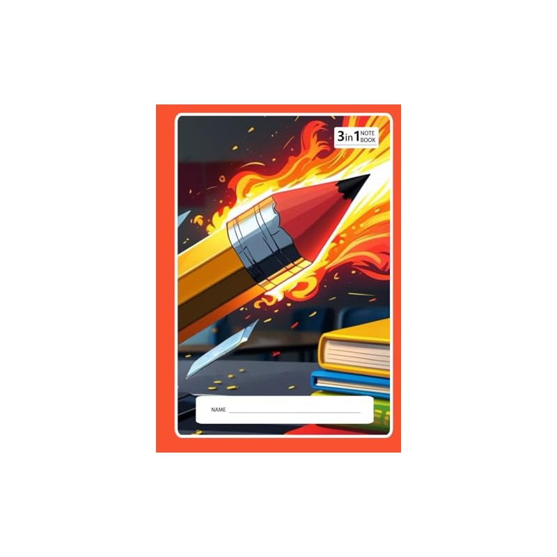 3-in-1 Subject Hardcover Notebook – 243 Pages – 7" x 10": Rocket Pencil Blast...