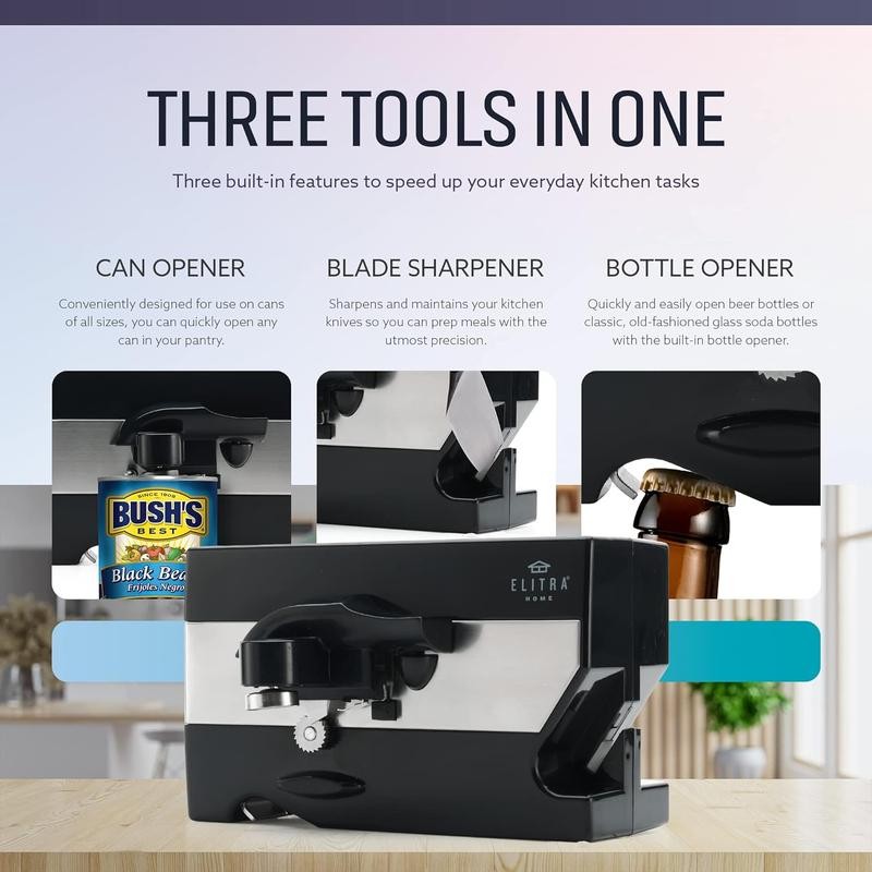 3 in 1 Under the Cabinet Electric Can Opener, Blade Sharpener, Bottle Opener,...