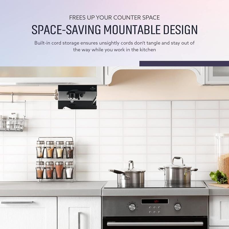 Electric Can Opener: Quickly remove can and jar lids with our under-the-cabinet smooth edge can opener that does all the work for you;Its easy-to-use swing grip and magnetic lid provide comfort and execution during everyday use;In addition, the automatic openers can accommodate most can sizes