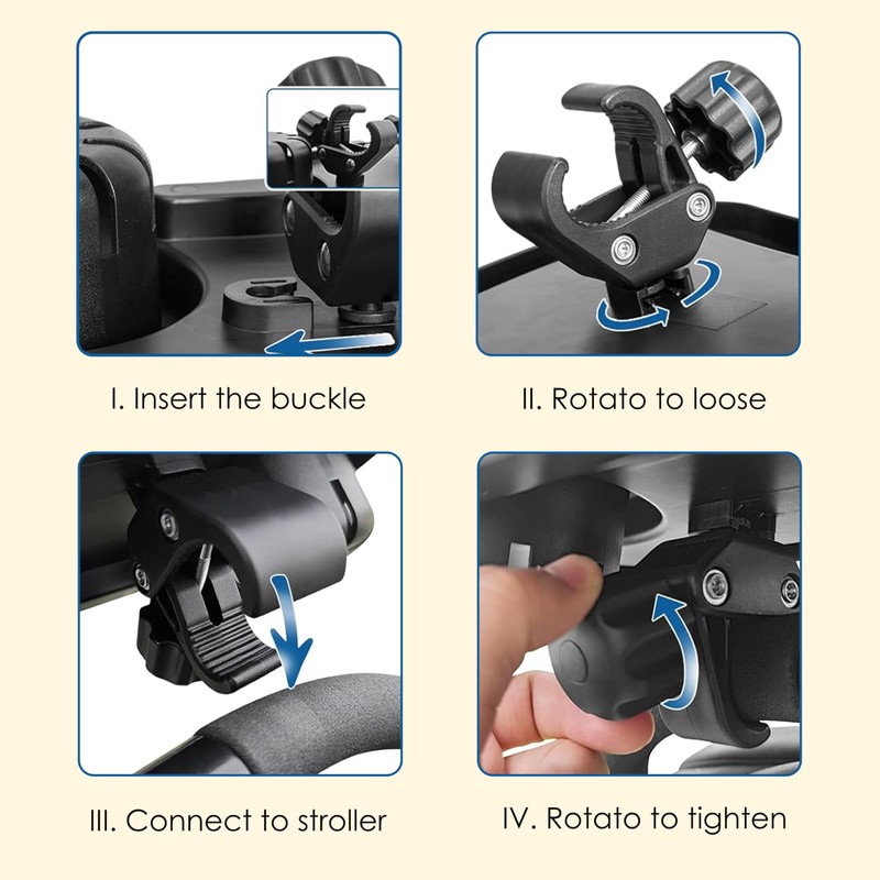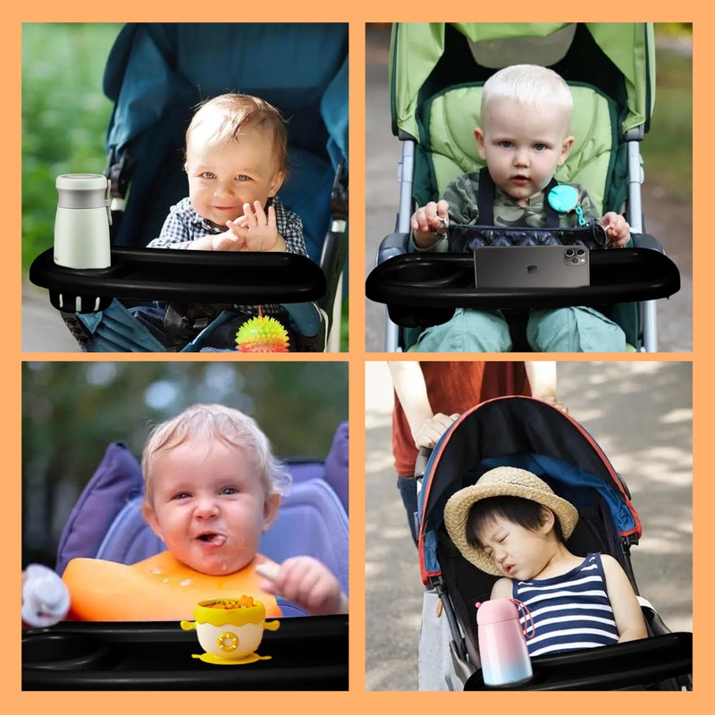 - 【Universal Stroller Compatibility】This enhanced snack tray is designed to fit most strollers' belly/bumper bars. The non-slip grip clip tightly secures the bar, preventing any tilting or sliding down, ensuring a secure fit during your strolls
