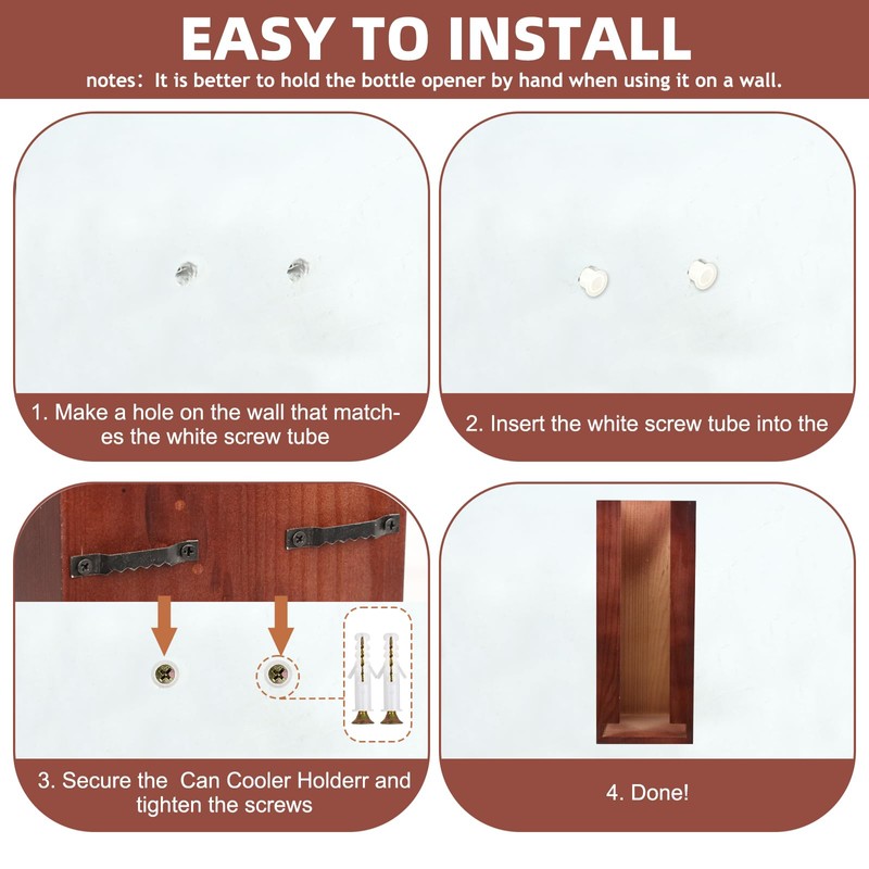 - EASY TO USE: The beer can cooler holder can be hung on the wall or placed on a table for easy access. It comes with all the necessary tools for easy installation.