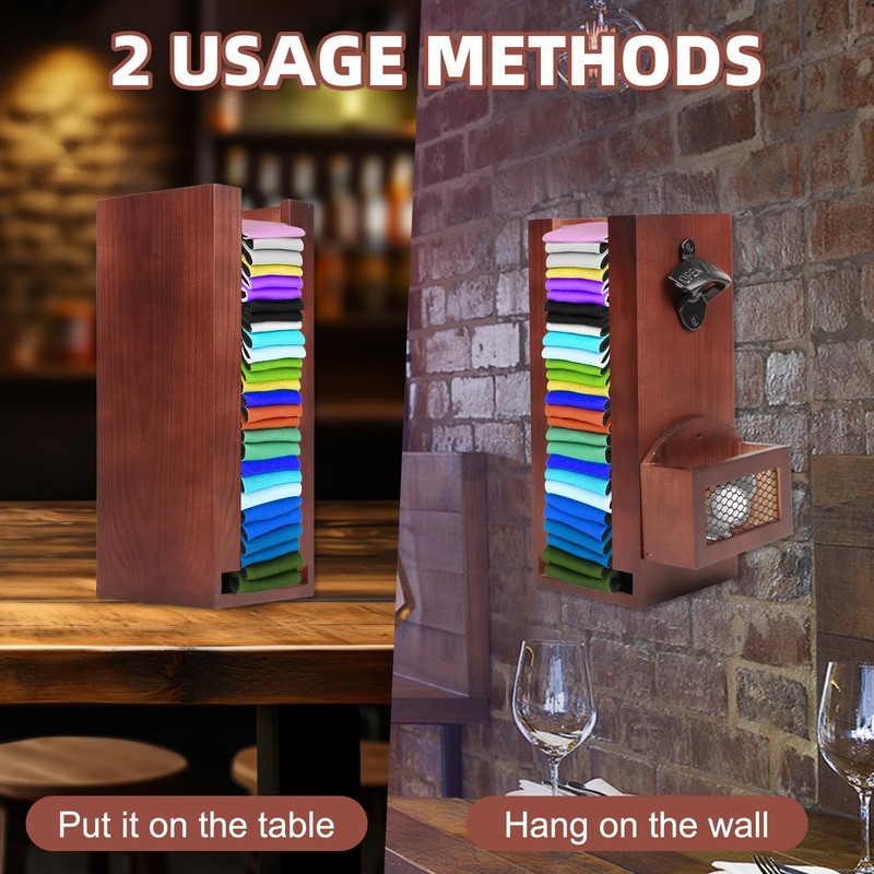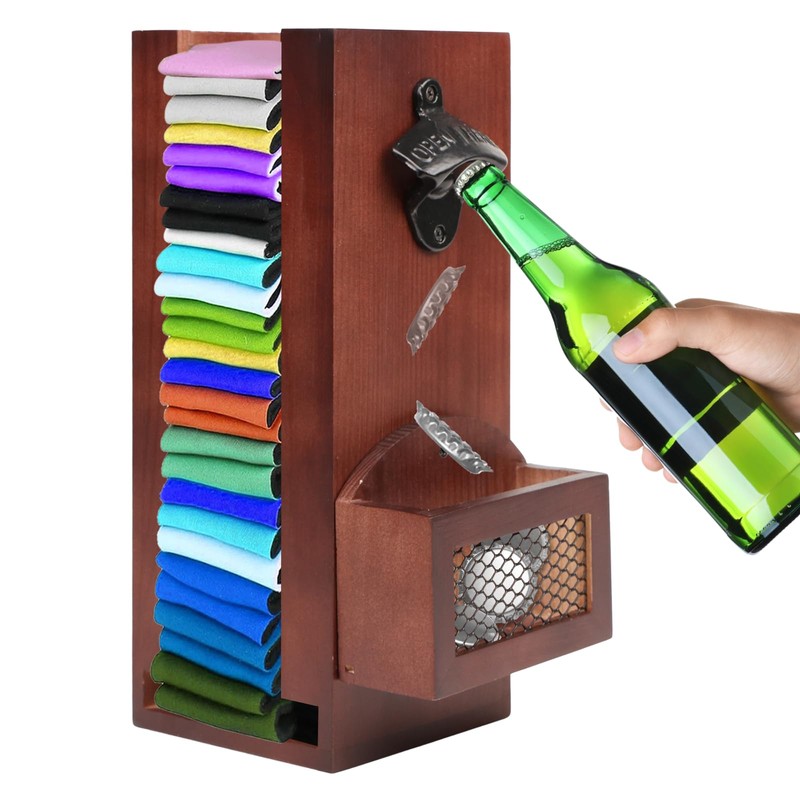 - MULTI-PURPOSE DESIGN: This 3-in-1 can cooler holder not only stores beer can sleeves, but also opens bottles and collects caps. It's perfect for beer enthusiasts and can hold up to 30 standard-size coolers.